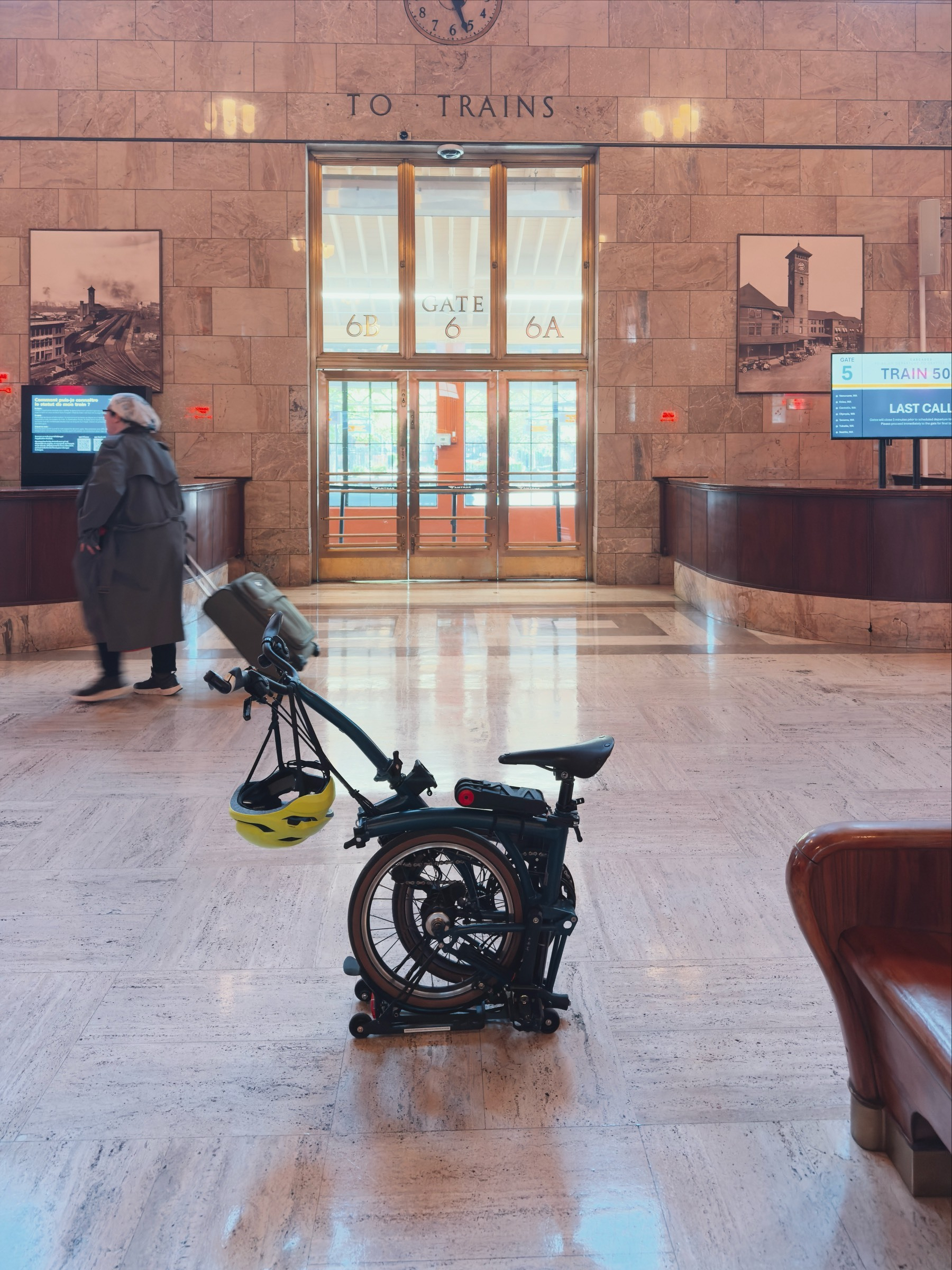 #I took my Brompton C-Line on the train to Eugene. I used it to bike to the Max station, then rode to Union Station, then checked it with Amtrak and picked it up in Eugene and rode it to my hotel.